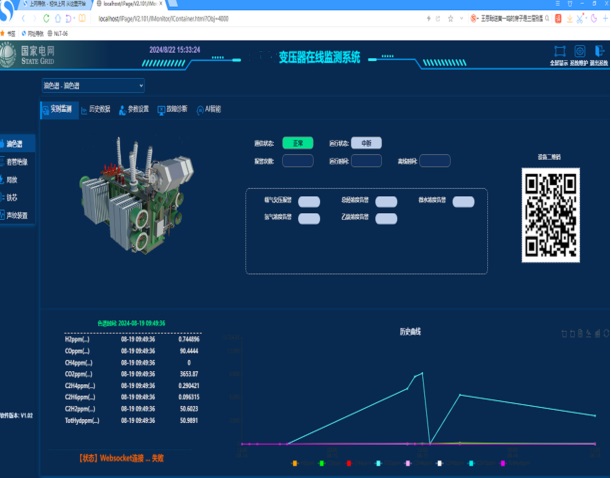CGX1009变压器油中气体光谱在线监测系统采用多源融合光谱技术用于监测油中溶解H2、CO、CO2、CH4、C2H2、C2H4、C2H6、O2、N2等特征气体及微水含量的智能装置。CGX1009装置由工业机柜(带空调)、核心功能单元、交流配电端子排、工控触摸屏和户外机柜组成,通过11英寸工控触摸屏可对光谱监测软件进行操作及参数设置。